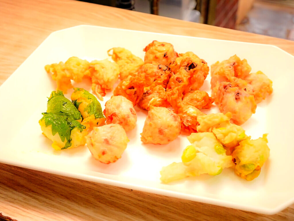 フードブース F-14 太田かまぼこ 1945年中島町で創業。 北海道産白身魚にイカ、野菜を練り合わせ、サクサクパン粉で仕上げています。 一番人気、函館いかメンチ。 メニュー かまぼこミックスパック 価格 540 円 函館いかメンチ 価格 300 円 ※価格はすべて税込です