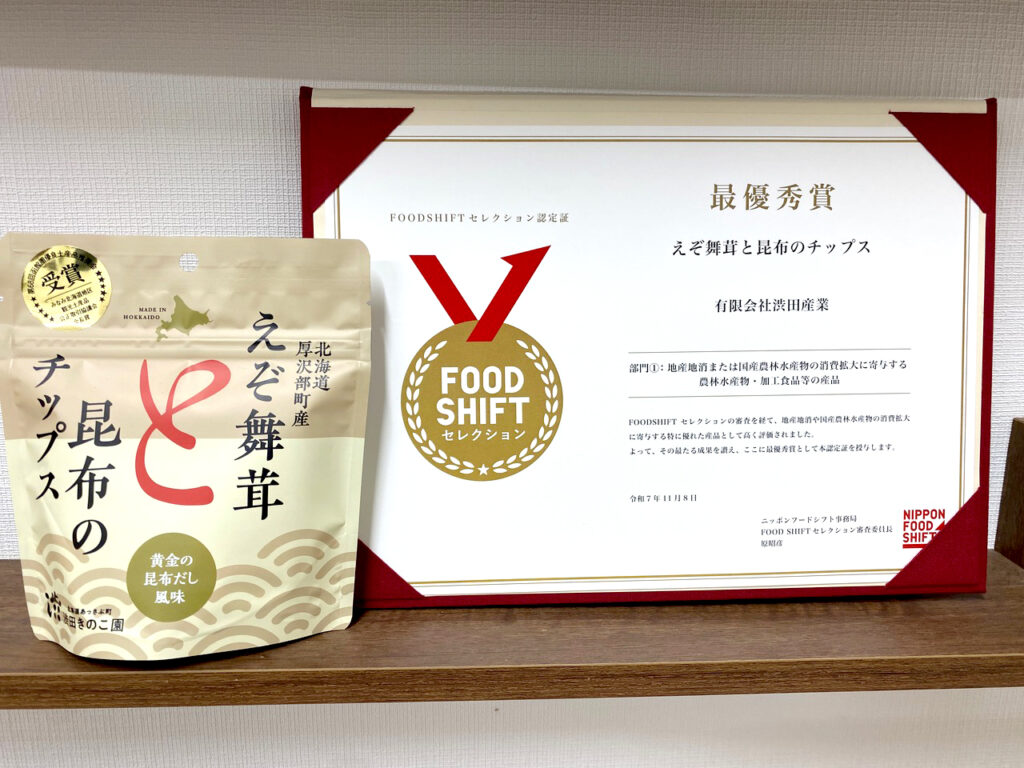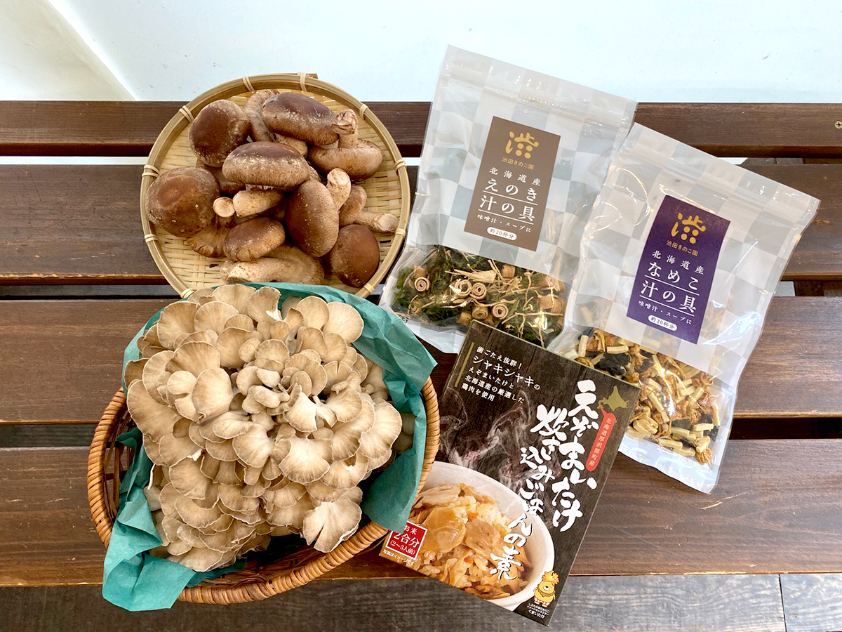 マルシェブース M-2 渋田きのこ園 厚沢部町で「えぞまいたけ」を育ててます。 舞茸やキノコを使った加工品もたくさんご用意していますので、ぜひお楽しみください! メニュー えぞ舞茸 価格 400 円 えぞ舞茸と昆布のチップス 価格 540 円 ※価格はすべて税込です